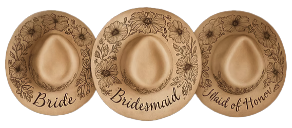 Step into a world of creativity with our wide-brimmed hats—uniquely crafted pieces you can burn, paint, or fully customize to match your personal style. From bold designs to subtle details, the possibilities are endless when you’re creating something that reflects YOU. Whether you’re celebrating with friends, bonding with family, or simply looking for a new artistic adventure, these sessions offer the perfect blend of fun, fashion, and self-expression.